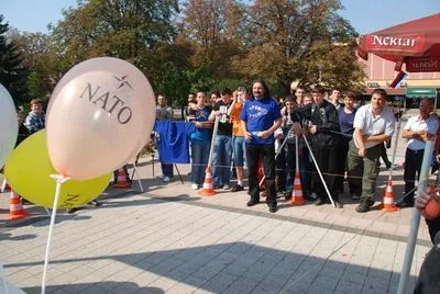 Организовали протесте «Нећемо у НАТО — Нећемо у рат» и перфомансе «Бушење НАТО», на трговима су грађани пикадо стрелицама гађали балоне са знаком и натписом НАТО. Ко пробуши НАТО ( балон) на поклон добије мајицу СРБИ РУСИ — ЈА.